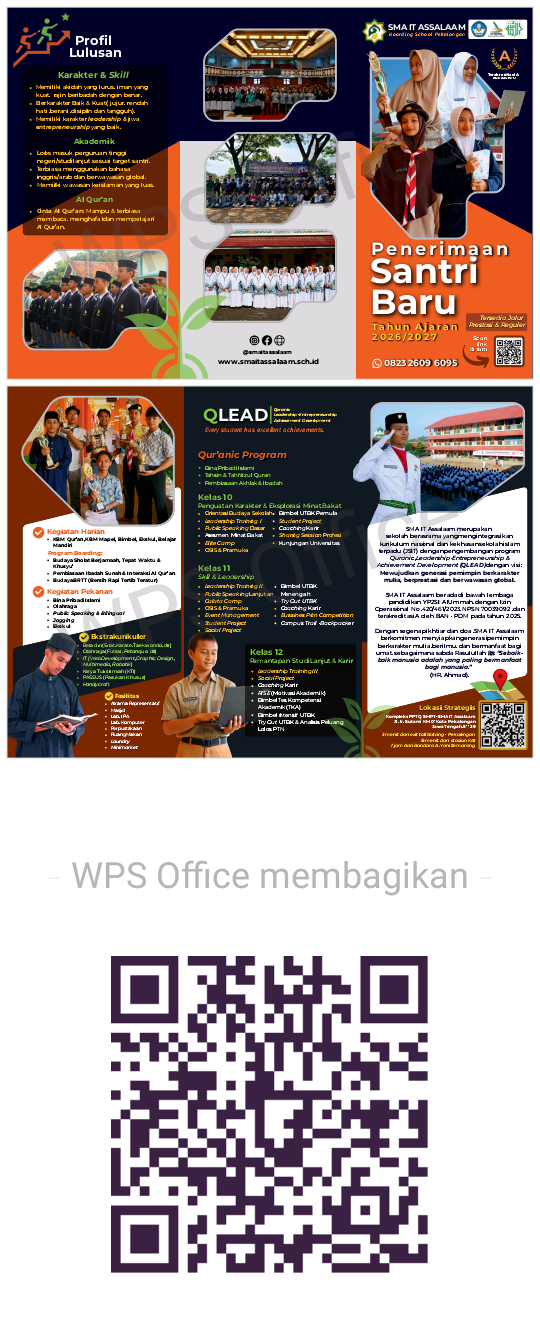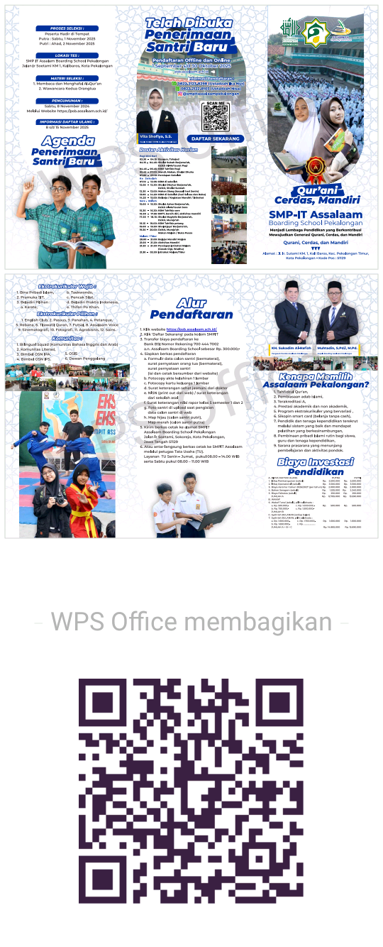 Klik "Download Brosur" dan pilih SMAIT atau SMPIT untuk melihat informasi Pendaftaran Siswa Baru Assalaam Boarding School Pekalongan dalam bentuk brosur.